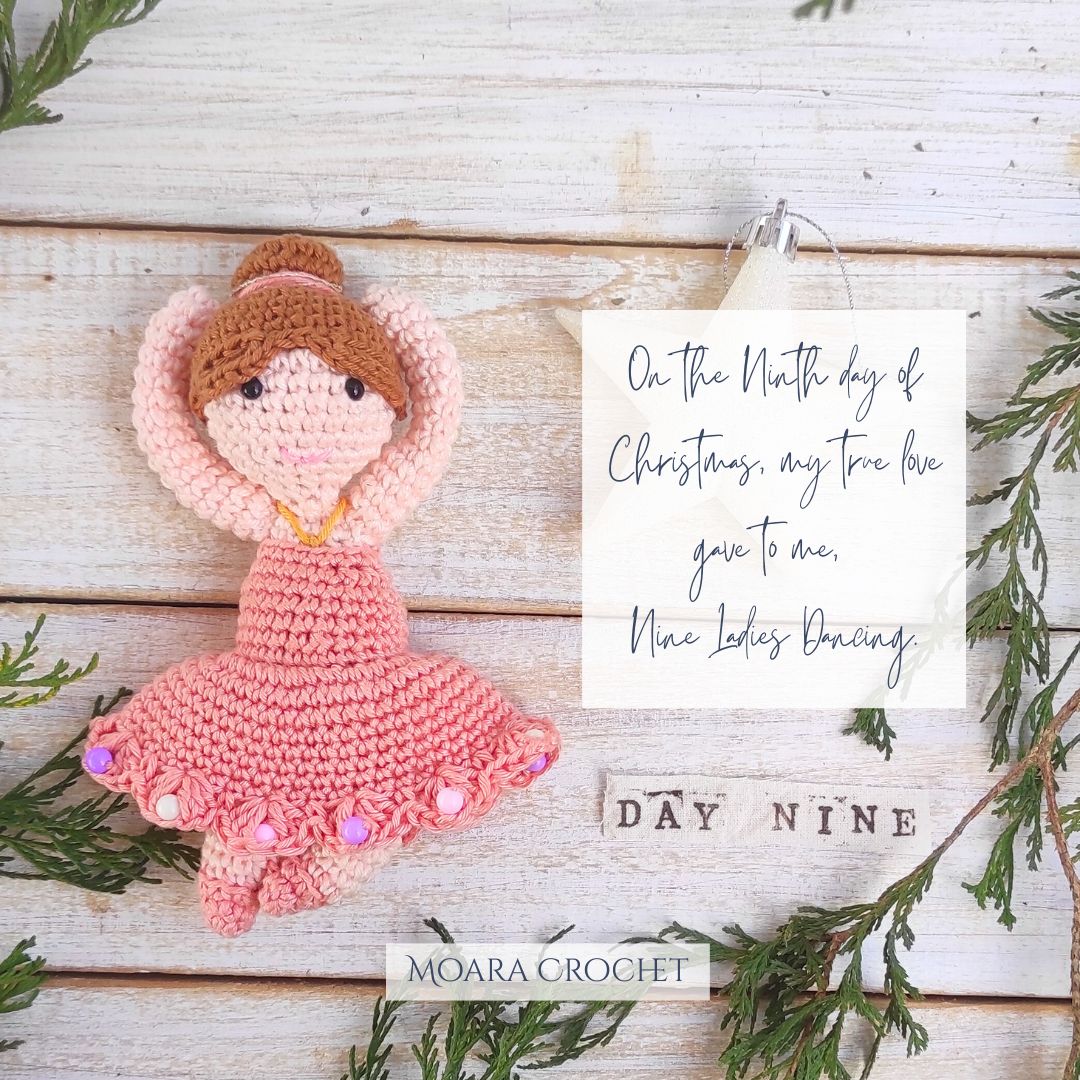 Step into the grace and movement of Day 9 with the Crochet Ladies Dancing Pattern, part of the Moara Crochet 12 Days of Christmas Collection. Inspired by timeless elegance and festive storytelling, these delicate crochet dolls capture the joy and beauty of dance in every stitch.